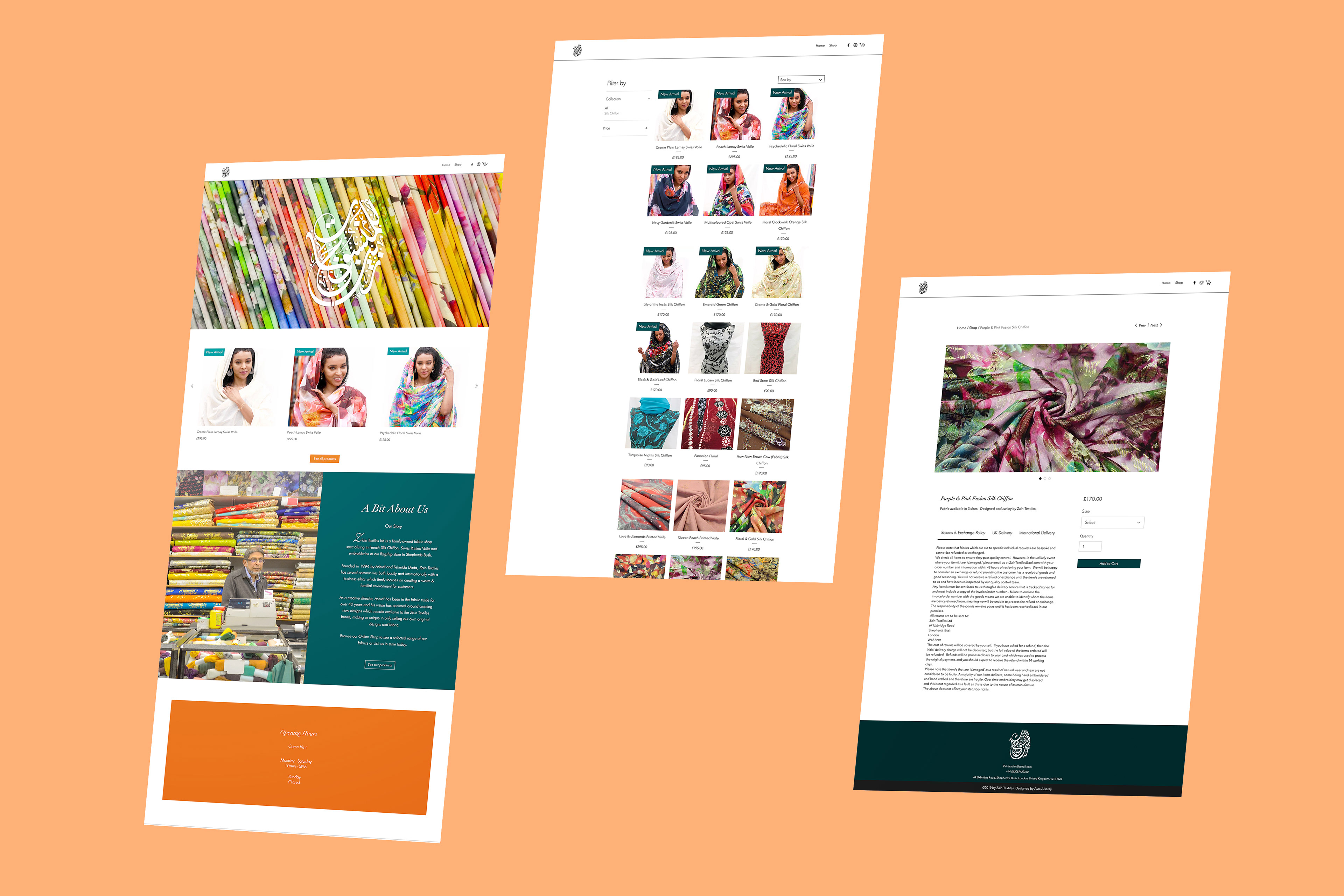 Web design and product photography for www.zaintextiles.com